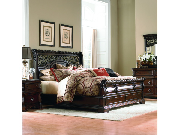 Arbor Place – 4 Piece Bedroom Set (California King Sleigh Bed, Dresser & Mirror, Chest) – Dark Brown