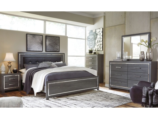 Lodanna – 6 Pc. – Dresser, Mirror, Queen Panel Bed With Roll Slats – Gray