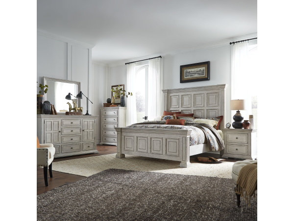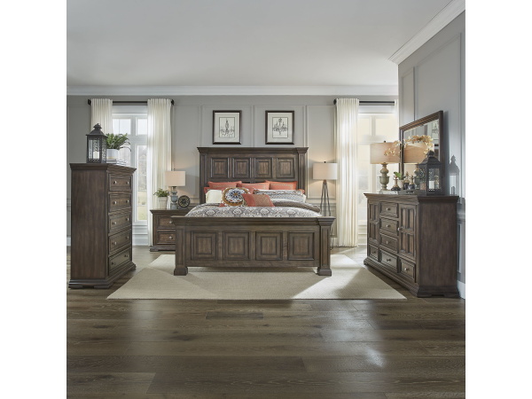 Big Valley – 5 Piece Bedroom Set (King Panel Bed, Dresser & Mirror, Chest, Nightstand) – Whitestone