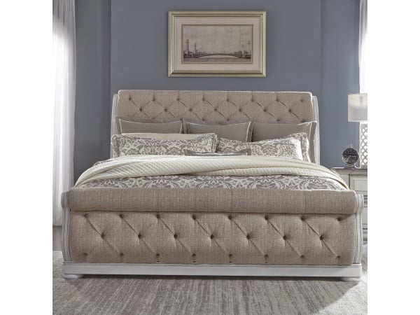 Original price was: $999.00.$842.00Current price is: $842.00.Abbey Park – King Upholstered Sleigh Bed – White