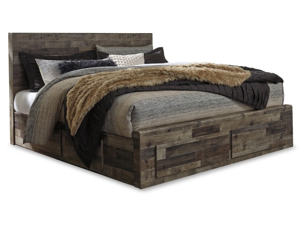 Derekson – King Panel Bed With 4 Storage Drawers – Multi Gray