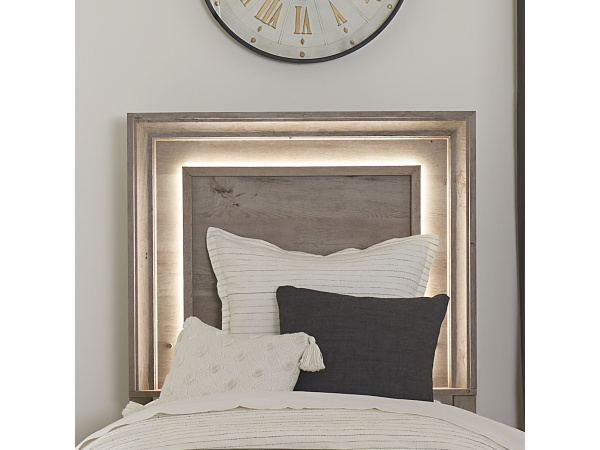 Horizons – Full Panel Headboard with Lights – Medium Gray