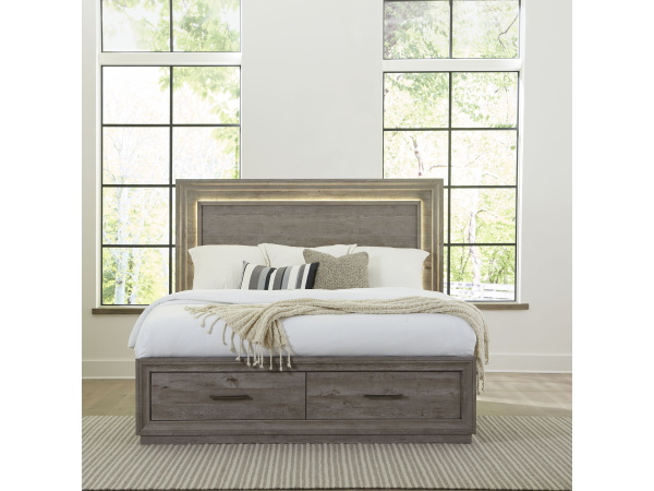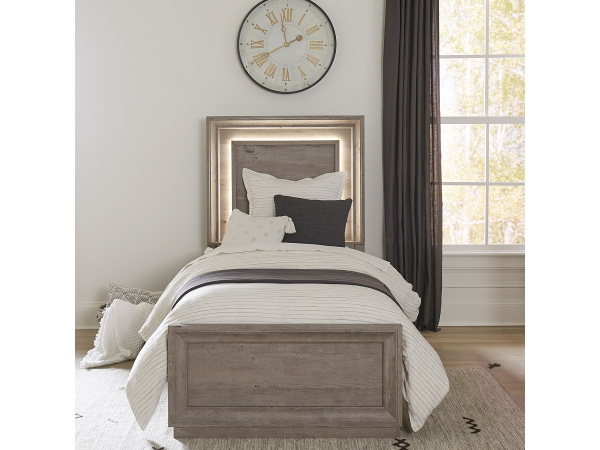 Horizons – Twin Panel Headboard with Lights – Medium Gray