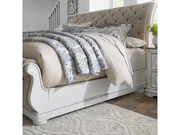 Magnolia Manor – California King Upholstered Sleigh Bed – White