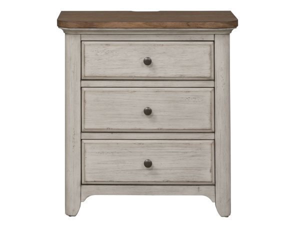 Farmhouse Reimagined – 3 Drawer Night Stand With Charging Station – White