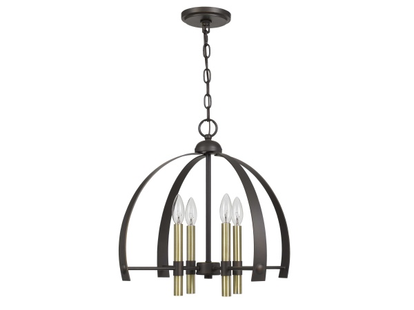 Carmel – 14.5″ Height 2 in 1 Metal Pendant Chandelier With Accents – Black & Antique Brass