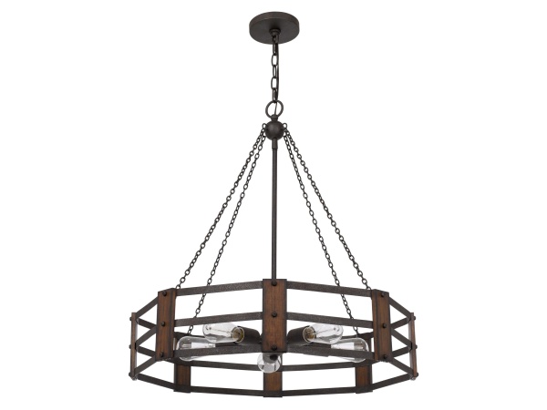 Sulmona – 30.3″ Height Metal and Wood Chandelier – Wood & Iron