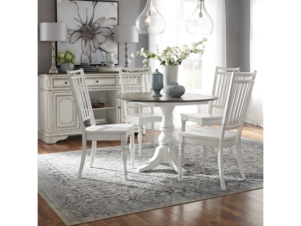 Magnolia Manor – 5 Piece Pedestal Table Set – White