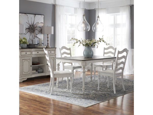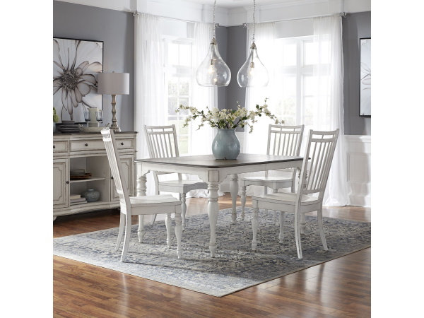 Magnolia Manor – 5 Piece Rectangular Table Set (Shaped Back Chairs) – White