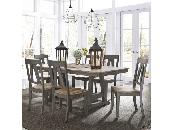 Lindsey Farm – 7 Piece Trestle Table Set – Dark Gray