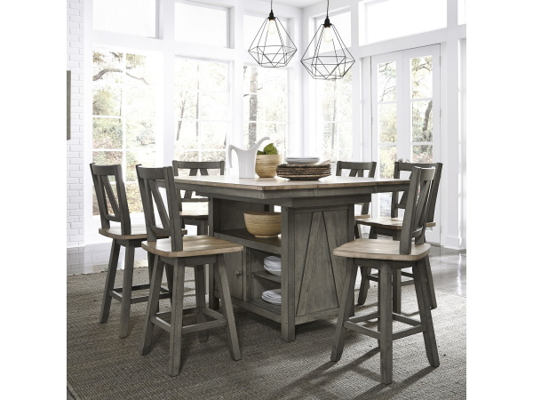 Lindsey Farm – 7 Piece Gathering Table Set – Dark Gray