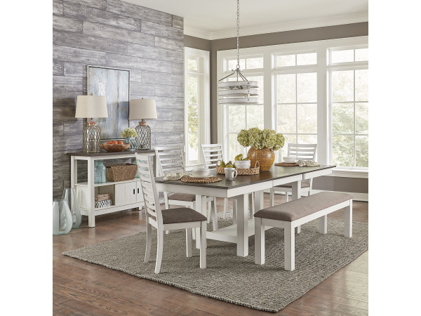 Brook Bay – 6 Piece Trestle Table Set (Ladder Chair Back) – Textured White / Carbon Gray