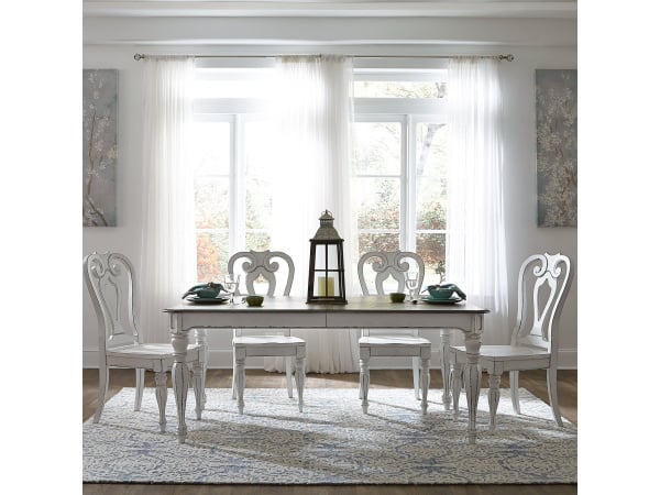 Magnolia Manor – 5 Piece Rectangular Table Set (Shaped Back Chairs) – White