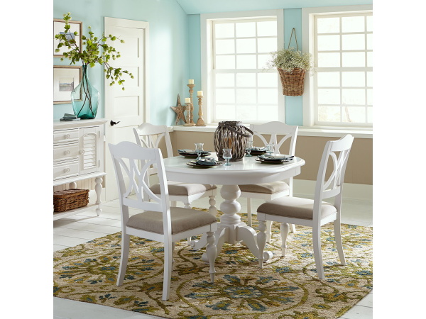 Summer House – 5 Piece Pedestal Table Set – Oyster White