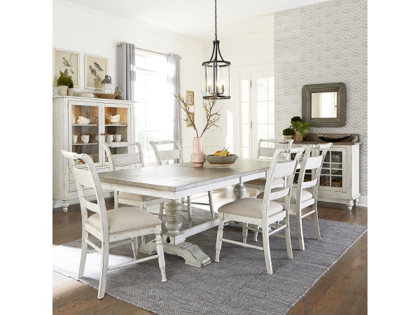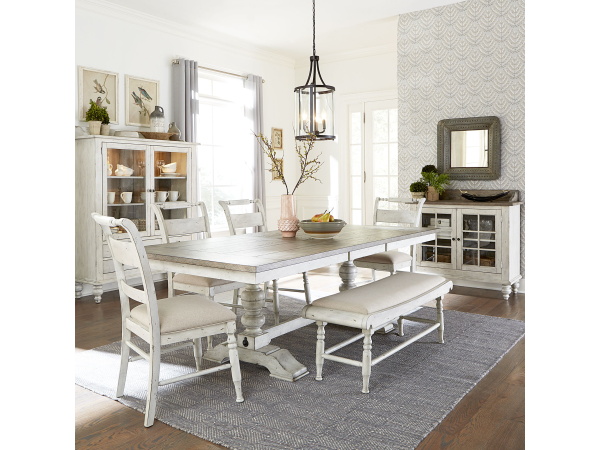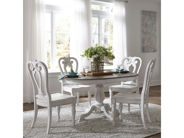 Magnolia Manor – 5 Piece Pedestal Table Set – White