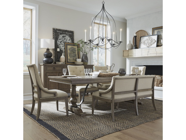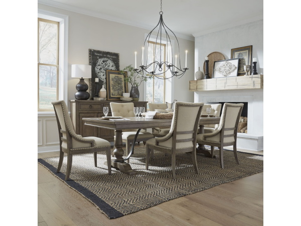 Paradise Valley – 7 Piece Trestle Table Set (Upholstered Side Chairs) – Dark Brown