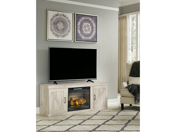 Bellaby – TV Stand With Faux Firebrick Fireplace Insert – Whitewash