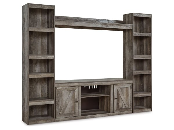 Wynnlow – 4-Piece Entertainment Center With 60″ TV Stand And Faux Firebrick Fireplace Insert – Gray