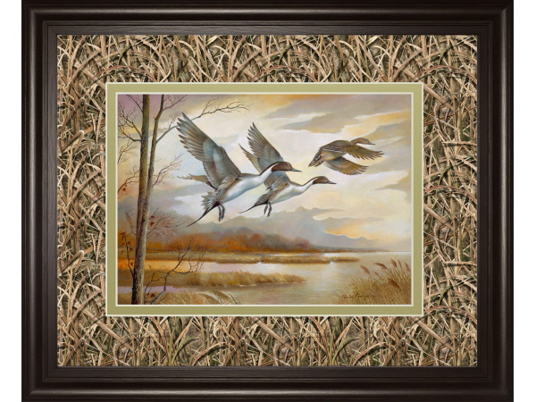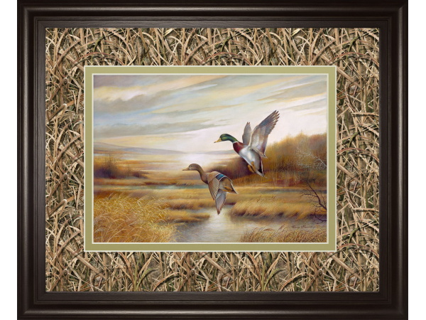 34×40 Mallards By Ruanne Manning And Mossy Oak Native Living – Framed Print Wall Art – Light Brown