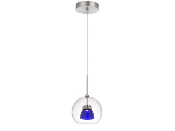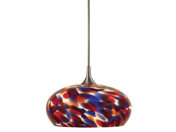 4.9″ Height Glass and Metal Pendant With Brushed Steel Cord – Red Blue Spot