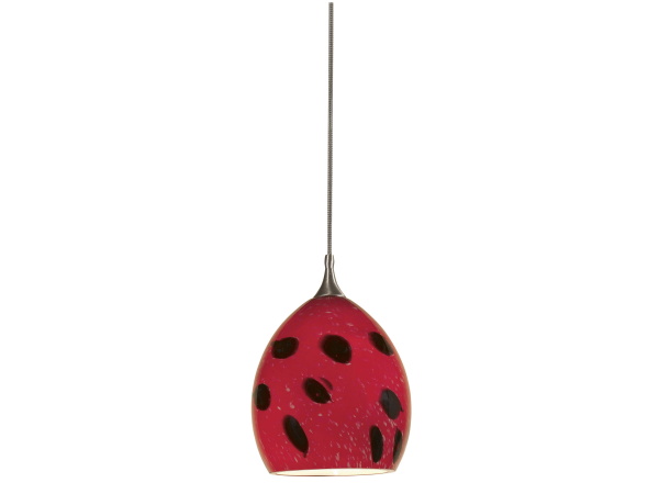 6.5″ Height Glass and Metal Pendant With Brushed Steel Cord – Red Dot