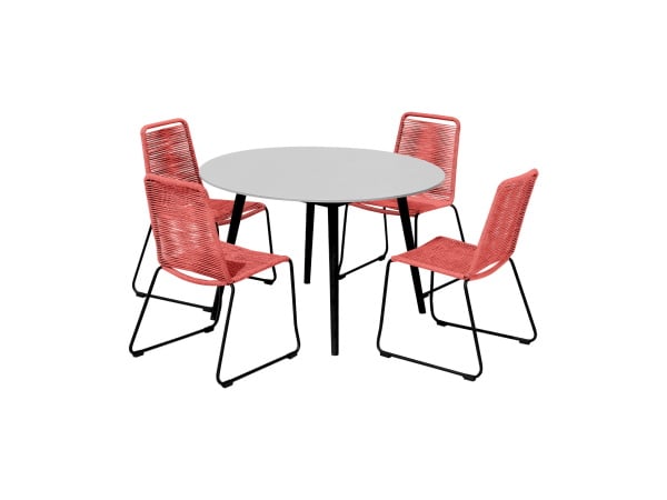 Kylie And Clip – Outdoor Patio 5 Piece Dining Set – Brick Red / Black Eucalyptus