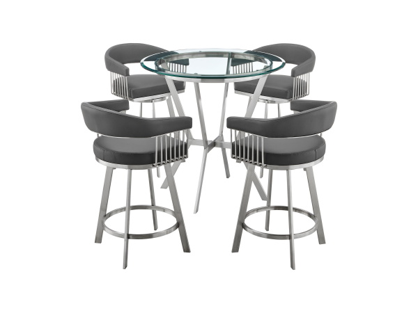 Naomi And Chelsea – 5 Piece Counter Height Dining Set – Brushed Silver / Gray
