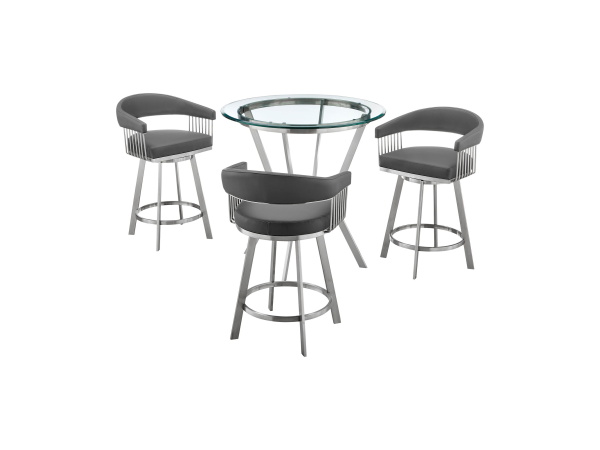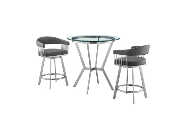 Naomi And Chelsea – 3 Piece Counter Height Dining Set – Brushed Silver / Gray