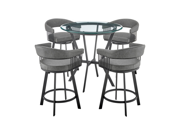 Menorca – Outdoor Patio 5 Piece Bar Table Set – Gray