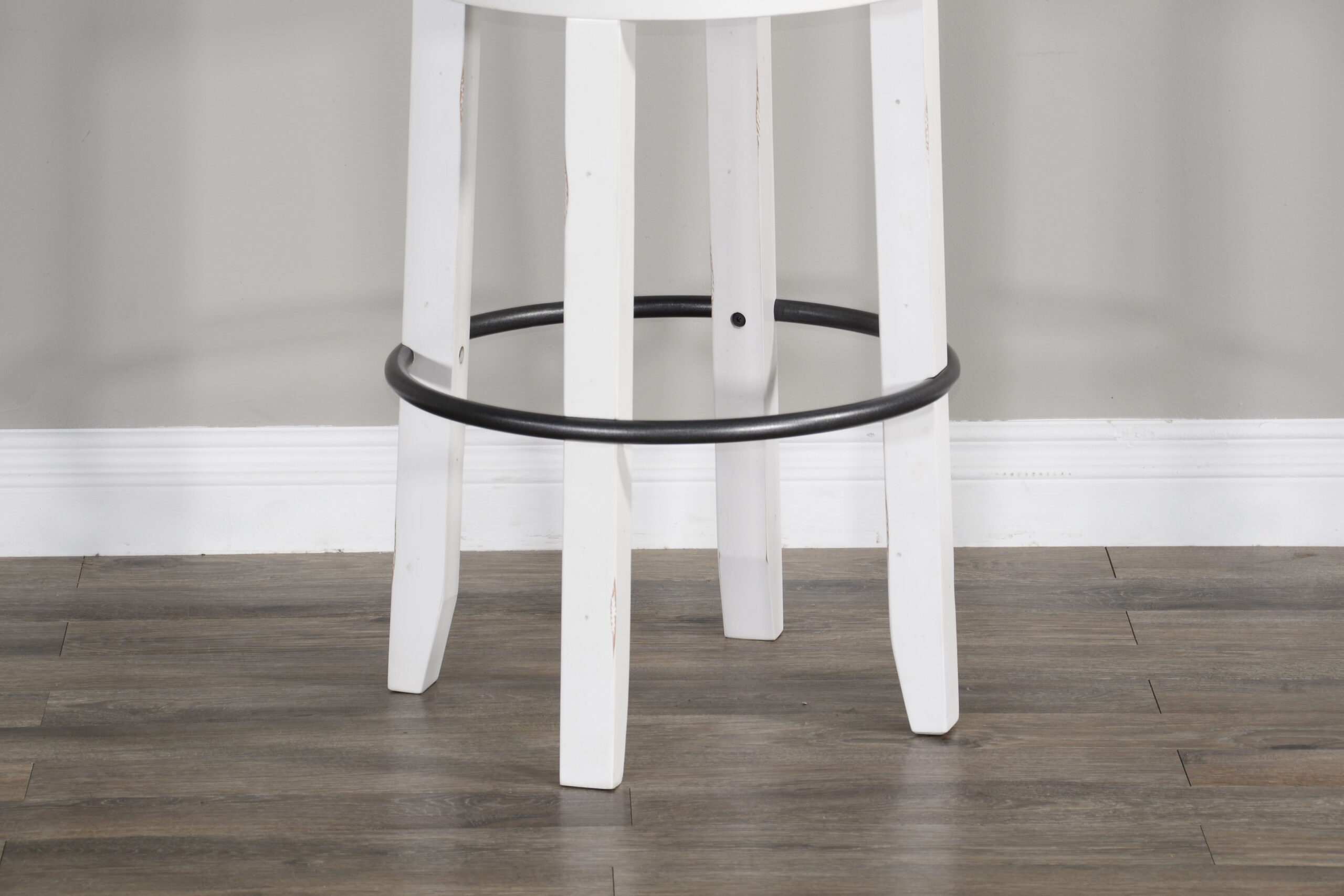 Meticulously constructed for lasting durability, these stools seamlessly blend wood and metal elements, creating a sturdy foundation that stands the test of time. Immerse yourself in the refined beauty of the distressed finish, adding a touch of rustic elegance to any space. Beyond its striking appearance, the cushioned seat ensures comfort, inviting you to indulge in a stylish and comfortable seating experience.
