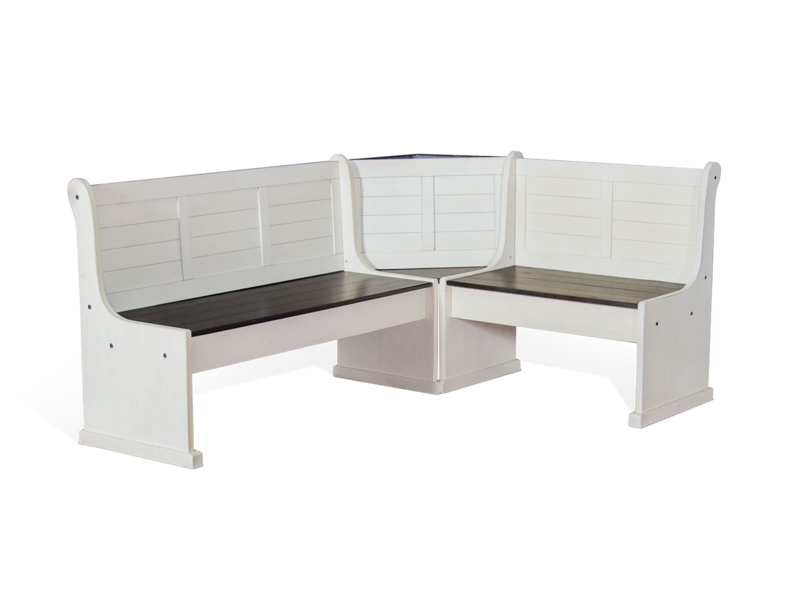 Carriage House – Long Bench & Corner Back – Cottage White / Europen Dark