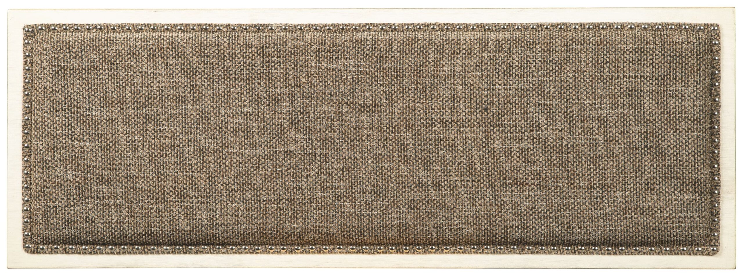- Heavy woven fabric upholstered seat with nailhead trim