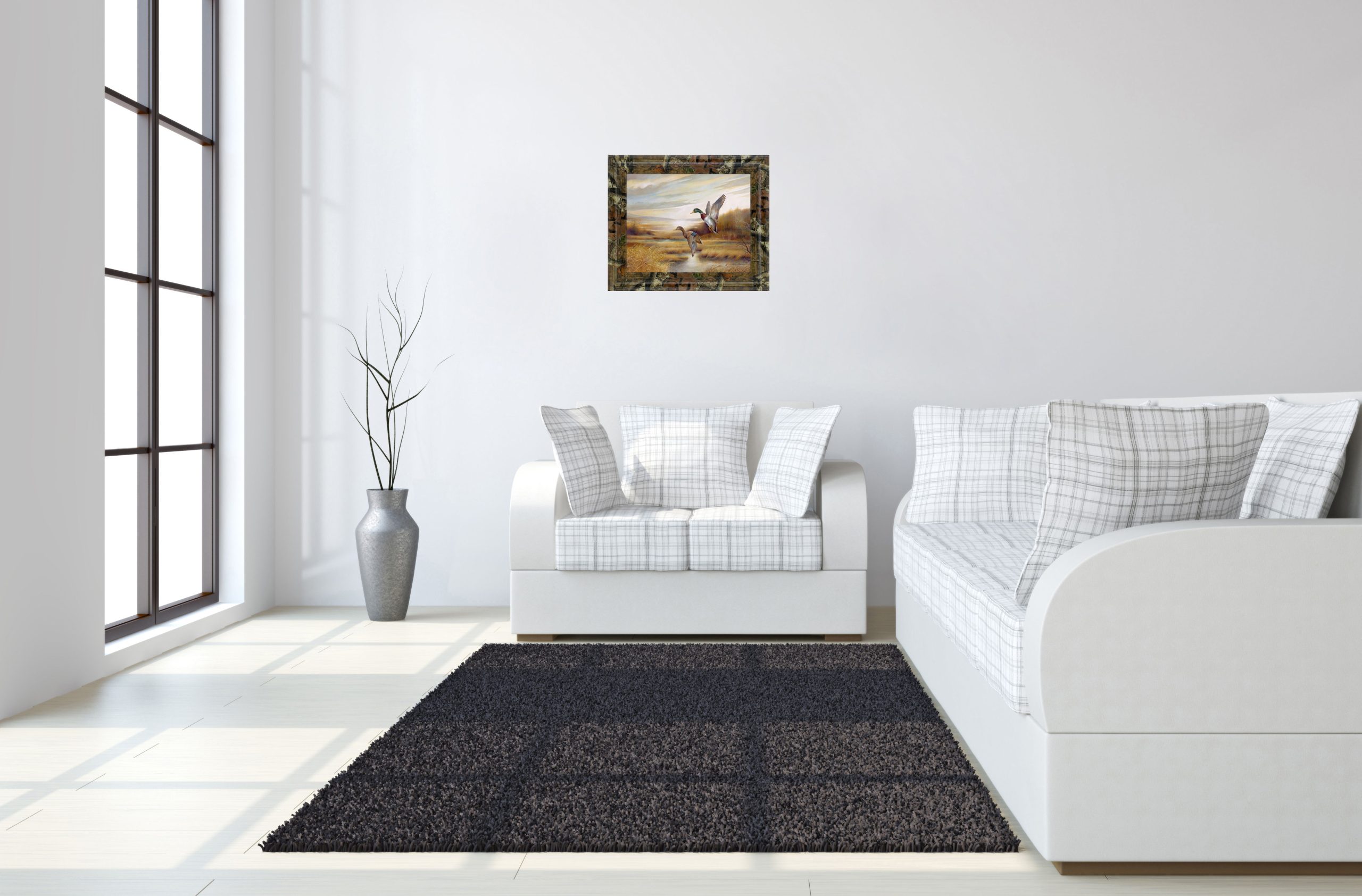 Step into a tranquil marshland at dawn with this captivating oil painting that beautifully portrays two mallards in mid-flight. The soft, warm earth tones and delicate brushstrokes invite you to experience the peacefulness of nature’s quiet moments. Set against a serene landscape of golden grasses and gentle waters, this artwork brings a soothing, timeless wildlife charm to any living room, office, or den. Encased in a rich brown frame with crystal-clear glass, it not only enhances the vivid details but also adds a touch of elegance and depth to your space. Ready to hang and crafted with expert care, this piece invites you to connect with the outdoors from the comfort of your home.