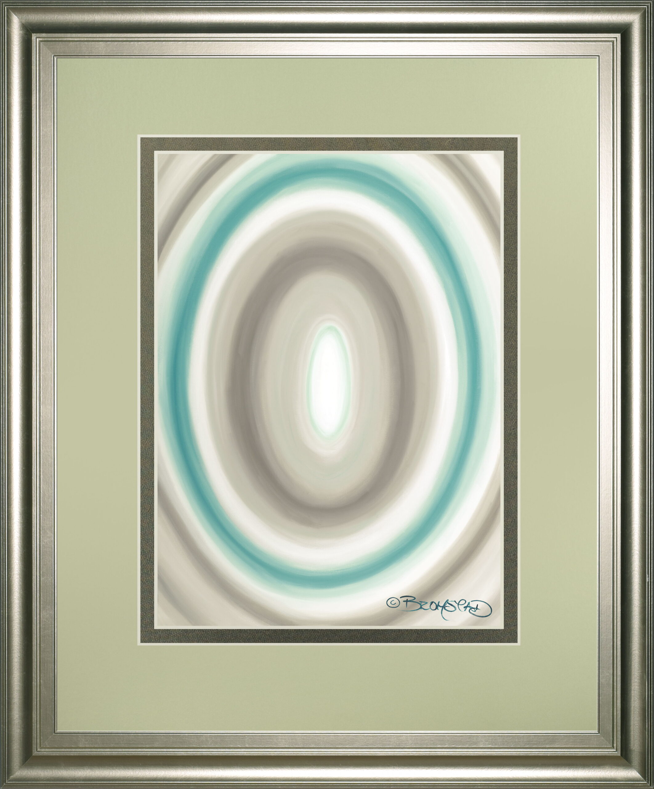 Step into a world of calm with “Concentric Ovals,” a contemporary graphic art piece that effortlessly blends muted tones of gray, cream, and teal. The soft, overlapping ovals create a soothing rhythm that invites quiet reflection and adds a touch of elegance to any living room or office. Encased in a wide silver frame with double matting and premium real glass, this artwork offers a polished gallery-style finish that highlights its subtle vibrancy and depth. Ready to hang and crafted with quality materials, it transforms your space with a sophisticated sense of modern abstraction.