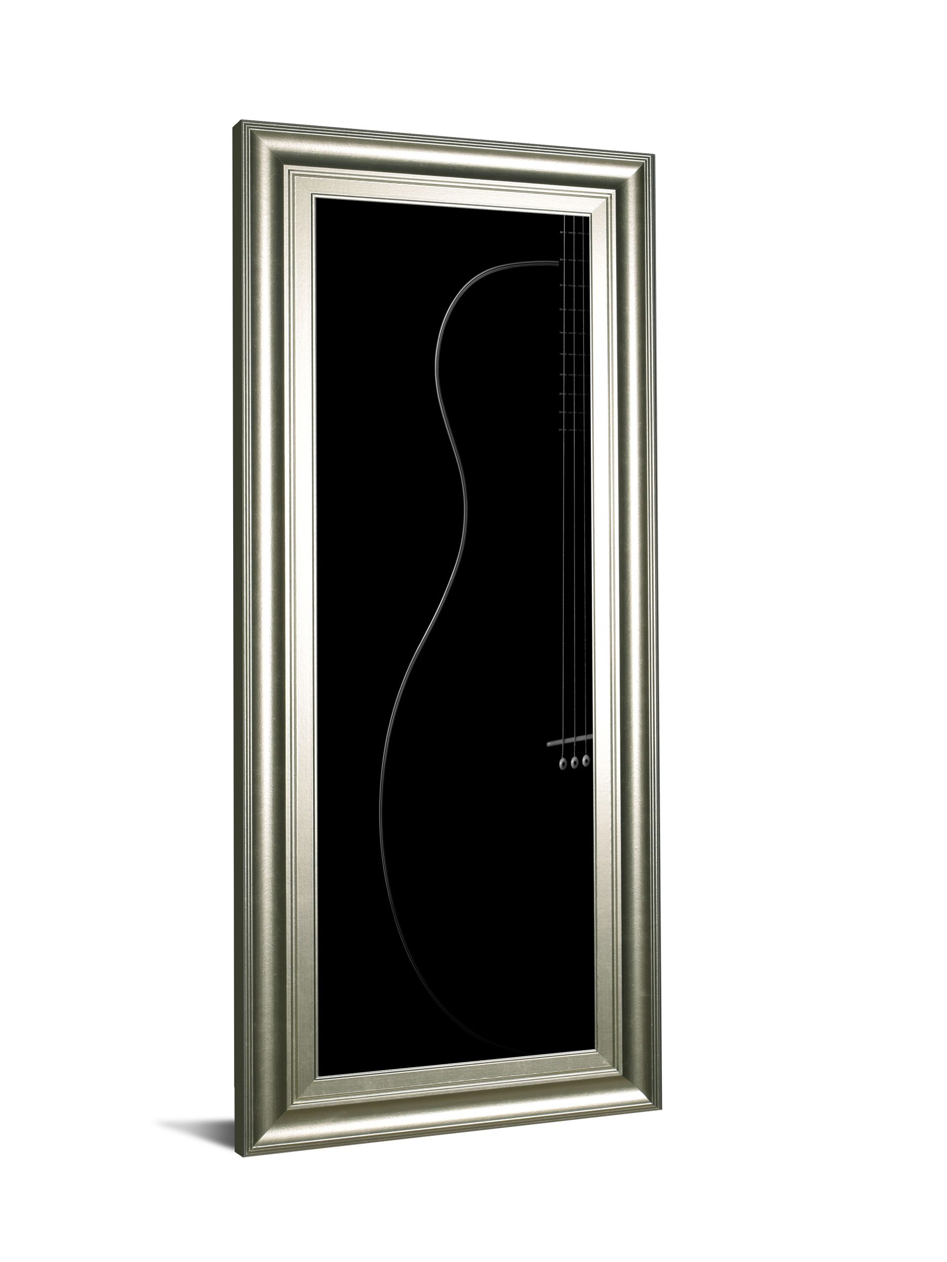 Embrace the quiet elegance of this Curved Silhouette framed wall art, where minimalist design meets musical inspiration. The delicate outline of a stringed instrument is traced against a deep black background, creating a subtle yet striking visual that invites reflection and adds a refined touch to any living or music room. Encased in a wide silver frame with crystal-clear glass, this piece not only protects the artwork but also enhances its sophisticated appeal. Perfectly suited for transitional décor, it arrives ready to hang, transforming your space into a serene sanctuary that celebrates the harmony of sound and style.