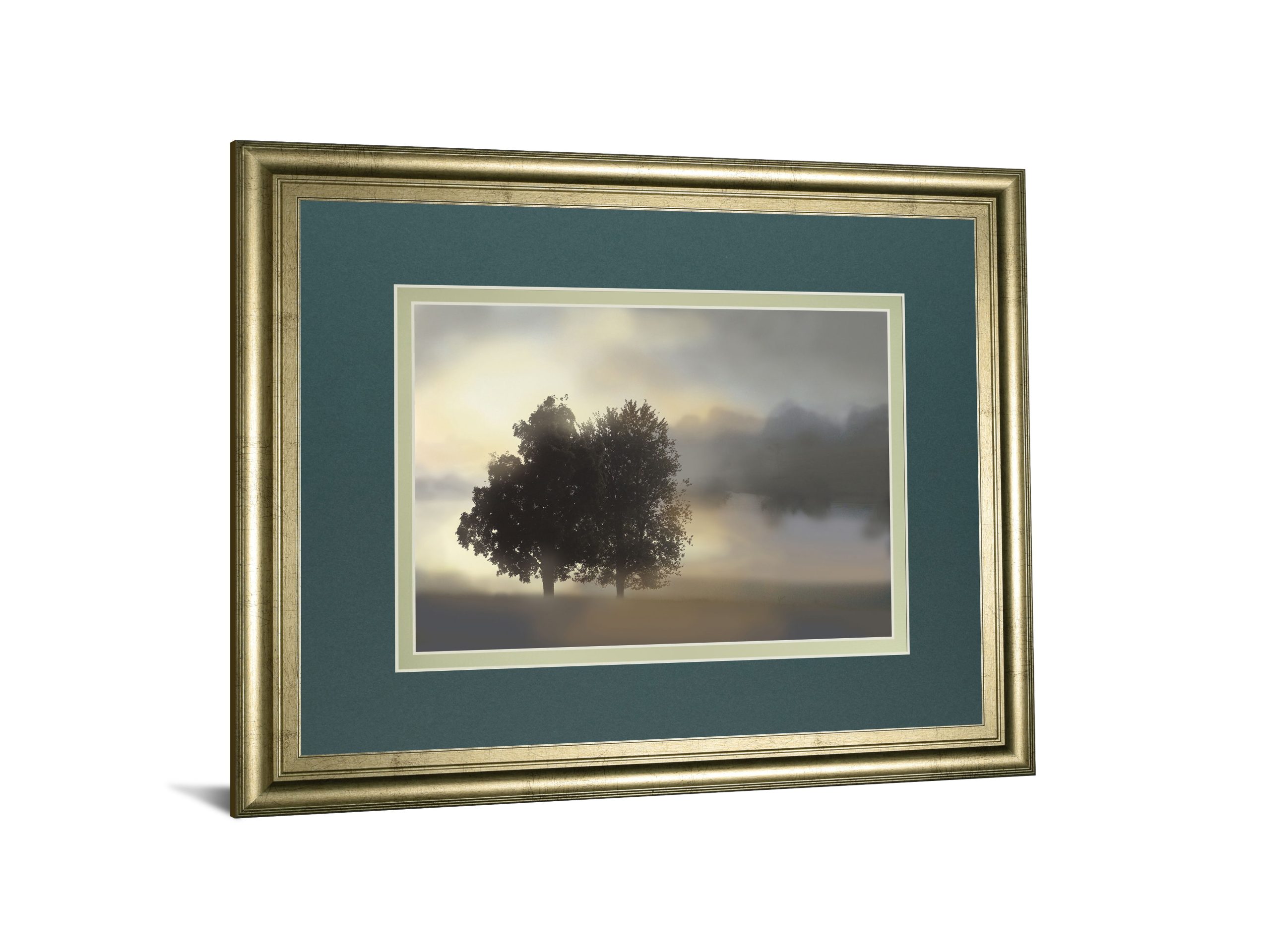 Misty Morning invites you into a serene dawn where two solitary trees stand shrouded in gentle mist beside a quiet lake. The soft, muted tones and delicate fog evoke a sense of calm and reflection, perfect for creating a peaceful ambiance in your living room, study, or office. Framed in a crisp chardonnay finish with double matting in teal, beige, and cream, this piece blends classic elegance with modern style. Crafted with premium materials and real glass, it offers a sophisticated touch that effortlessly enhances your décor while bringing the tranquil beauty of nature indoors.