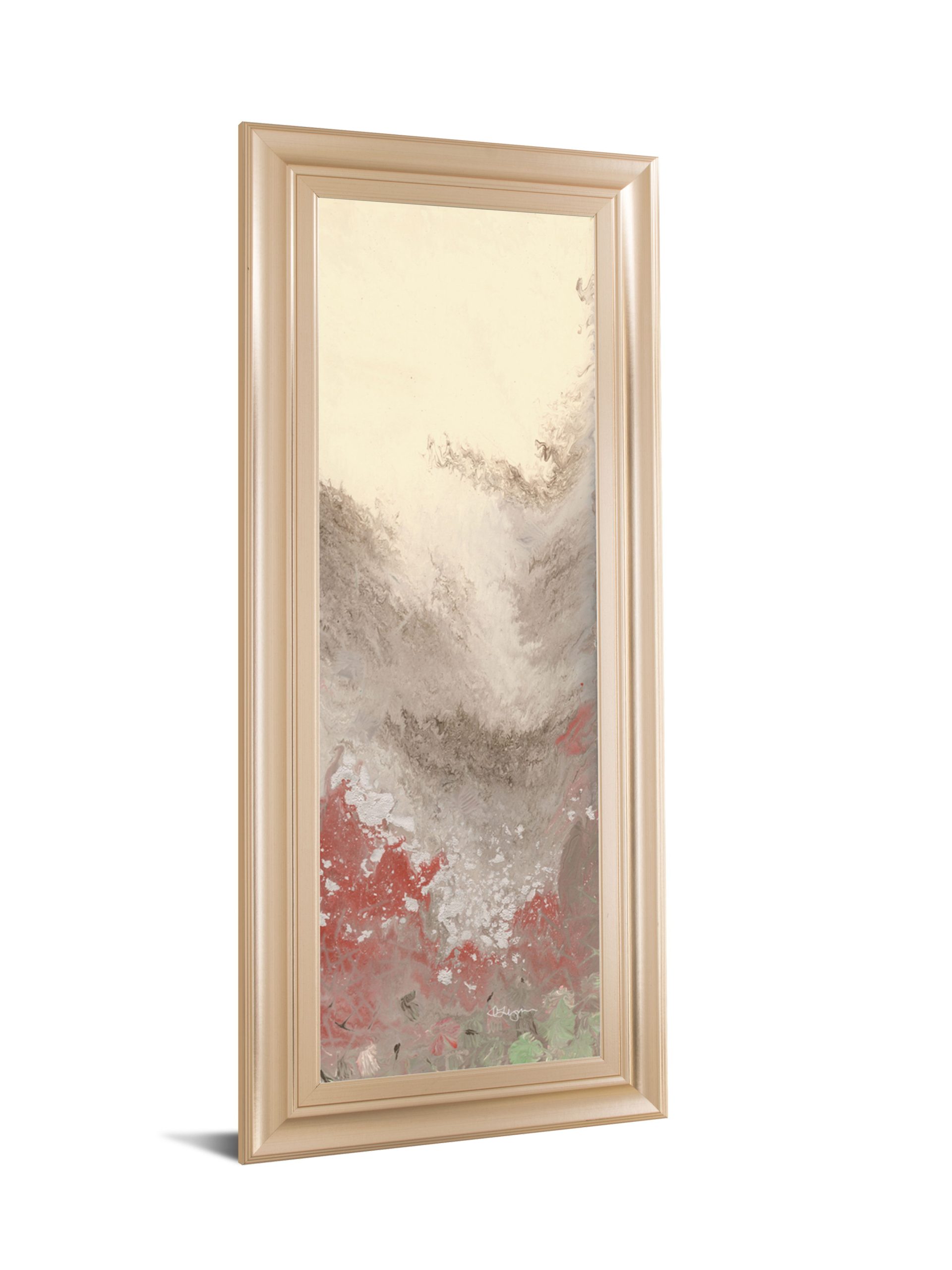 Discover the quiet allure of this contemporary abstract piece that transforms any space with its gentle flow of colors and textures. Soft beige and warm rose gold merge with muted coral and subtle green accents, creating a serene and sophisticated atmosphere. Encased in a rose gold frame with crystal-clear glass, this mixed media artwork invites calm contemplation and adds a refined touch to your living room or modern interior.
