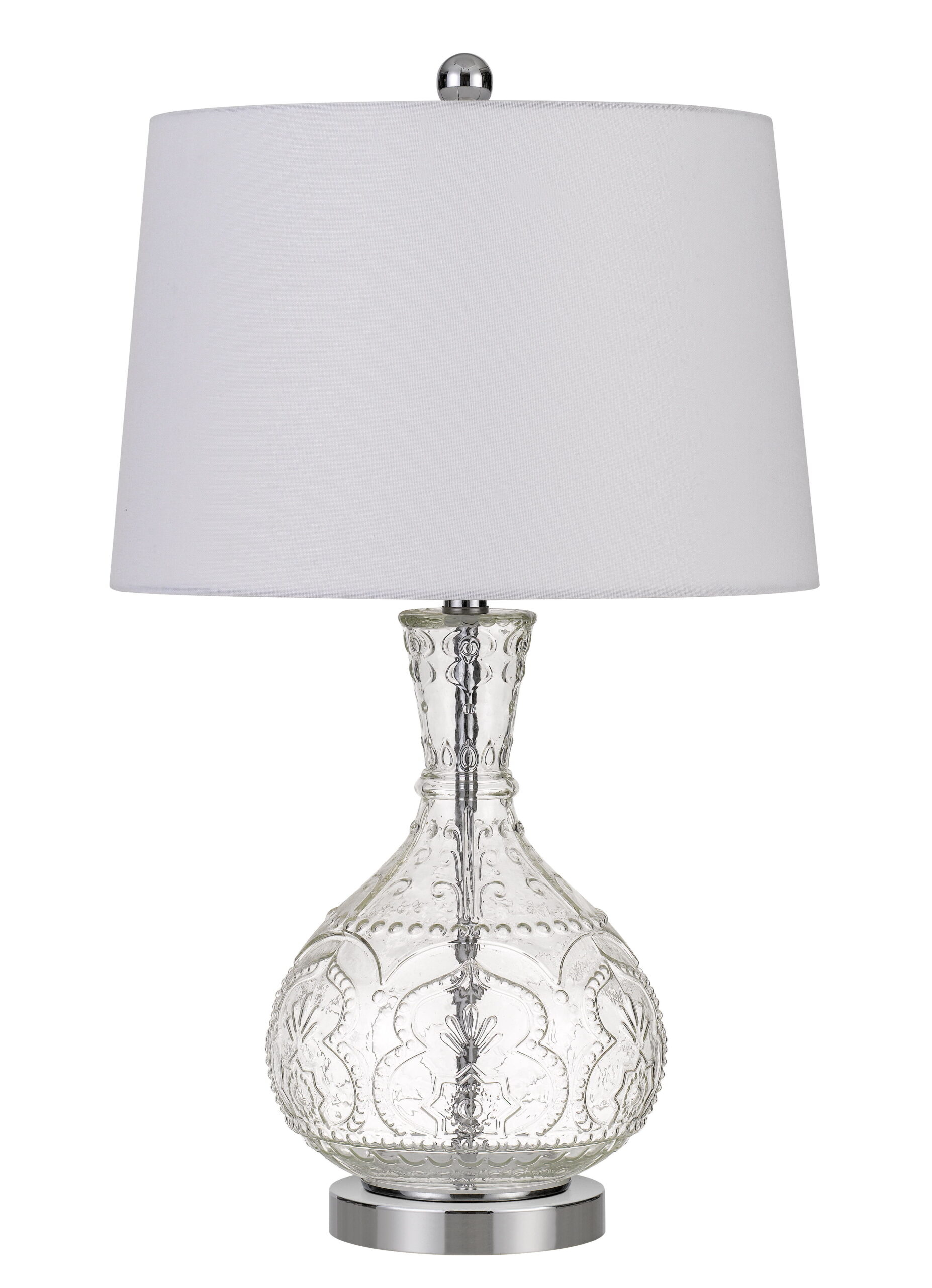 150W Nador Glass Table Lamp With Taper Drum Hardback Fabric Shade